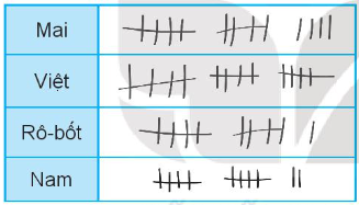 a) Mai: 14 câu; Việt: 15 câu; Rô-bốt: 11 câu; Nam: 12 câu.