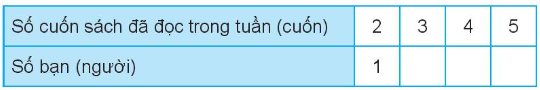 | Số cuốn sách đã đọc trong tuần (cuốn) | 2 | 3 | 4 | 5 |
