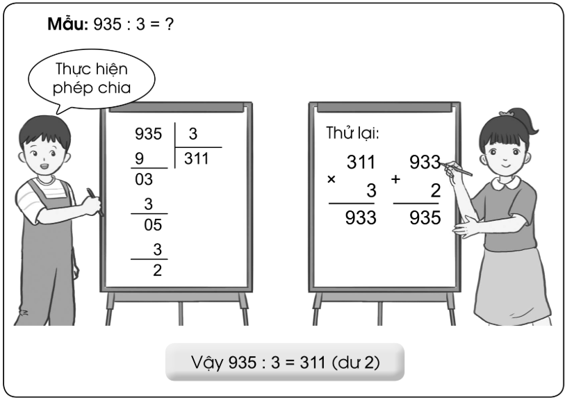 b) Thực hiện các phép chia rồi thử lại (theo mẫu):