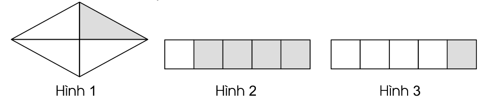 (Hình 2 và hình 3 đều chia thành 5 phần, hình 2 tô màu 4 phần, hình 3 tô màu 1 phần. )