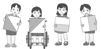 (Hình 2 và hình 4 không chia đều thành 2 phần bằng nhau, hình 3 chia làm 3 phần.)