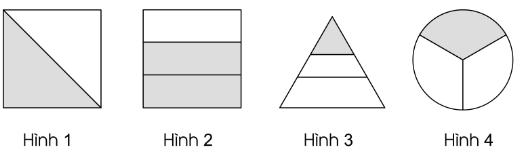 - Hình 4 được chia thành 3 phần bằng nhau, tô màu 1 phần. Vậy đã tô màu
