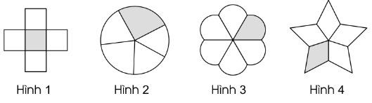 - Hình 4 được chia thành 5 phần bằng nhau, tô màu 1 phần. Vậy đã tô màu
