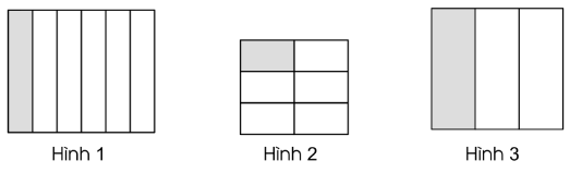 - Hình 1 được chia thành 6 phần bằng nhau, tô màu 1 phần. Vậy đã tô màu