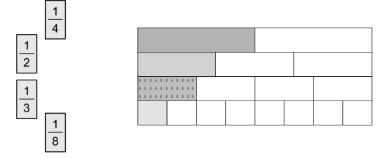 Nối thẻ tương ứng với phần đã tô màu trong mỗi băng giấy sau:
