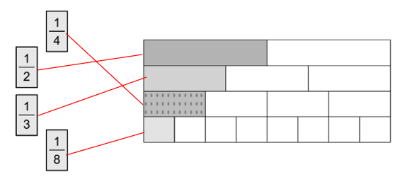 - Băng giấy thứ tư chia làm 8 phần bằng nhau, tô màu 1 phần. Vậy ta nối băng giấy thứ tư với thẻ ghi