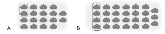- Hình A có 18 hạt dẻ.