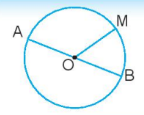 Hình tròn tâm O, bán kính OM, đường kính AB |