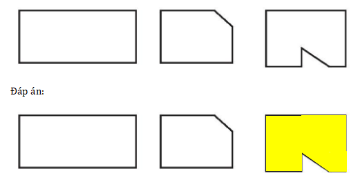 Dùng ê ke để kiểm tra góc vuông rồi viết tiếp vào chỗ chấm cho thích hợp