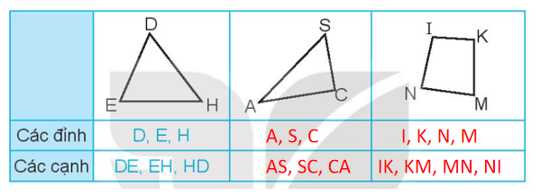 Viết tên các đỉnh và các cạnh của mỗi hình (theo mẫu)