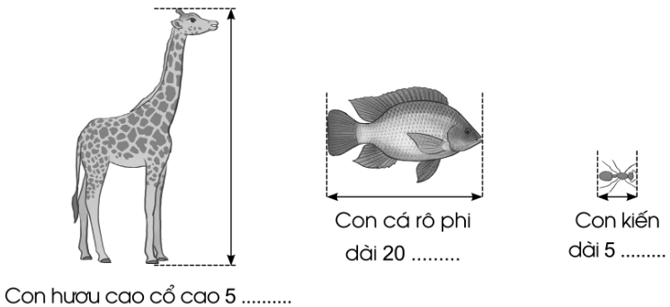 Chọn đơn vị đo độ dài (mm, cm, m) để viết vào chỗ chấm cho thích hợp: