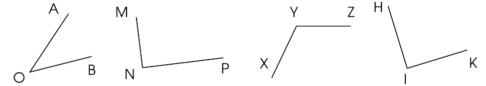 + Góc đỉnh O, cạnh OA và OB.