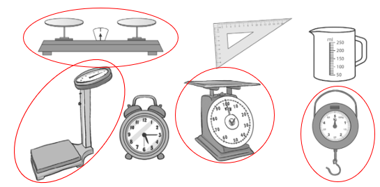 a) Dụng cụ nào dưới đây dùng để xác định khối lượng?