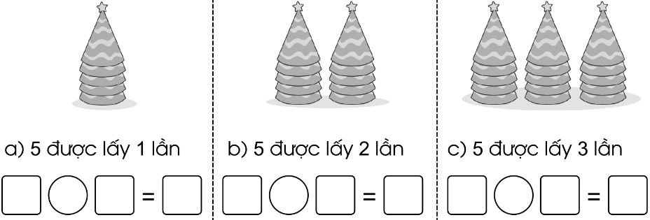 Viết phép nhân: 5 × 1 = 5