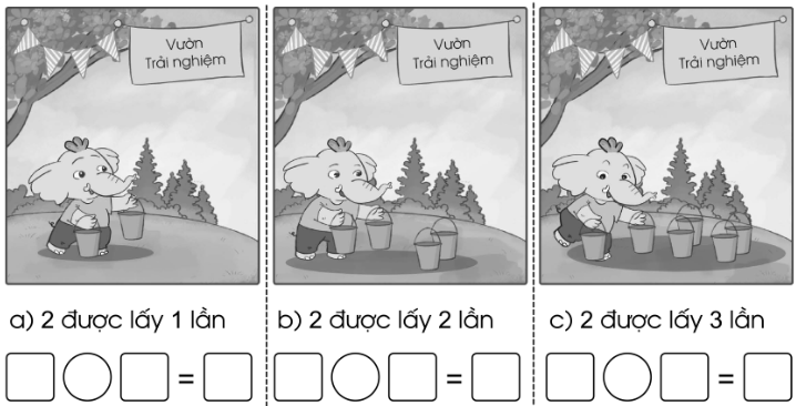 Viết phép nhân thích hợp với mỗi tranh vẽ: