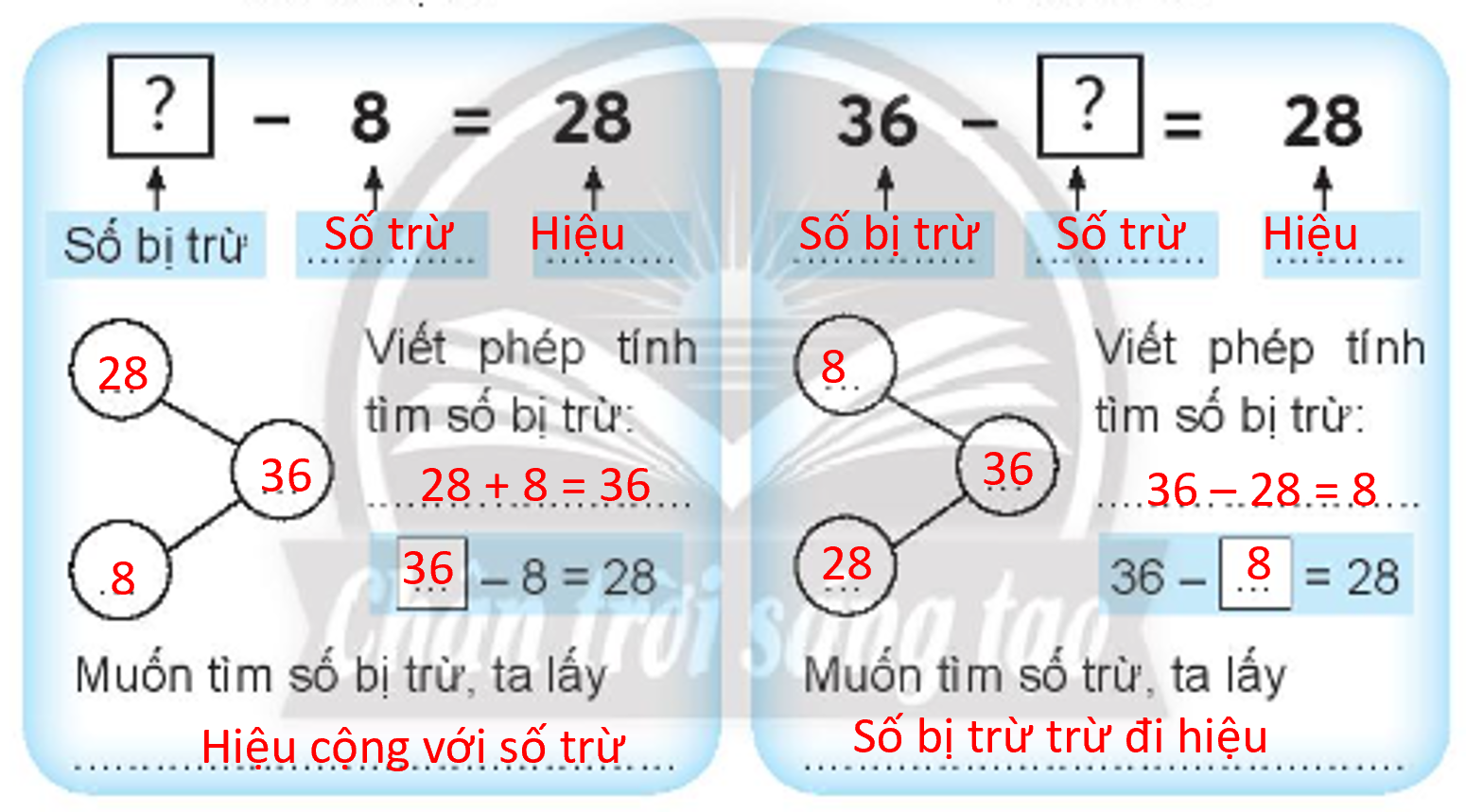Vở bài tập Toán lớp 3 trang 13: Tìm số bị trừ, tìm số trừ Chân trời sáng tạo