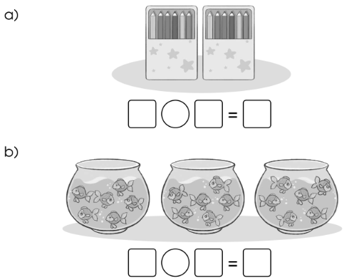 Viết phép nhân thích hợp với mỗi tranh vẽ: