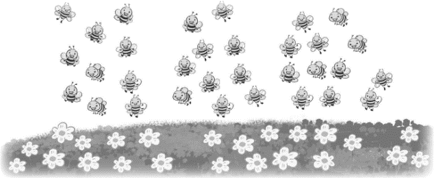 a) Em hãy ước lượng số con ong, số bông hoa trong hình sau rồi viết số thích hợp vào chỗ chấm: