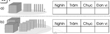Em quan sát hình vẽ và xác định các số nghìn, trăm, chục, đơn vị và điền số thích hợp vào ô trống.