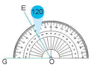 Góc đỉnh O, cạnh OE, OG bằng 60o