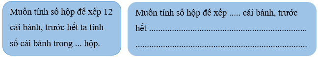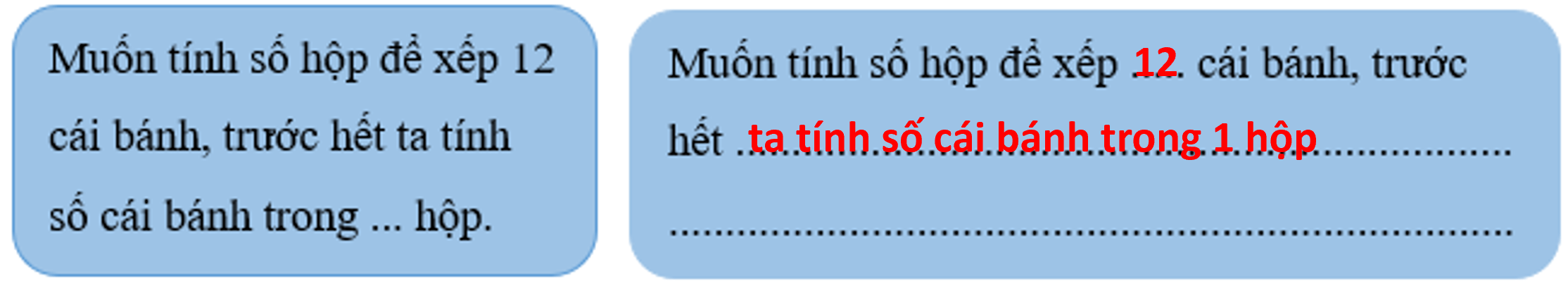 b) 18 cái bánh: 3 hộp ........ cái bánh: 1 hộp 12 cái bánh: ...... hộp |