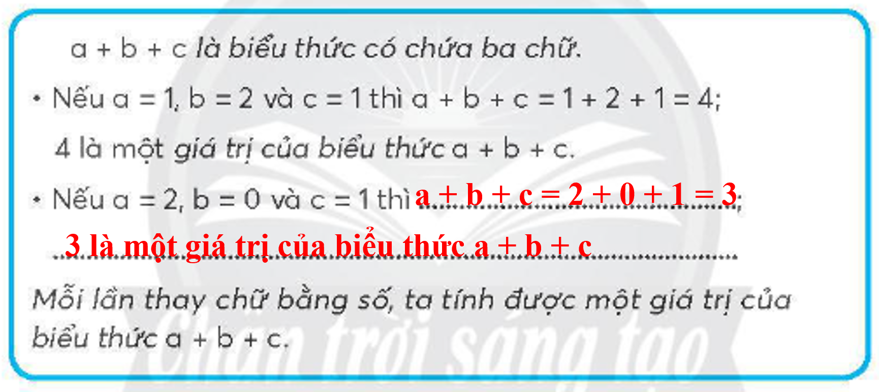 Vậy 35 là một giá trị của biểu thức a + b + c