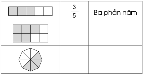a) Viết rồi đọc phân số chỉ phần đã tô màu trong mỗi hình dưới đây (theo mẫu)