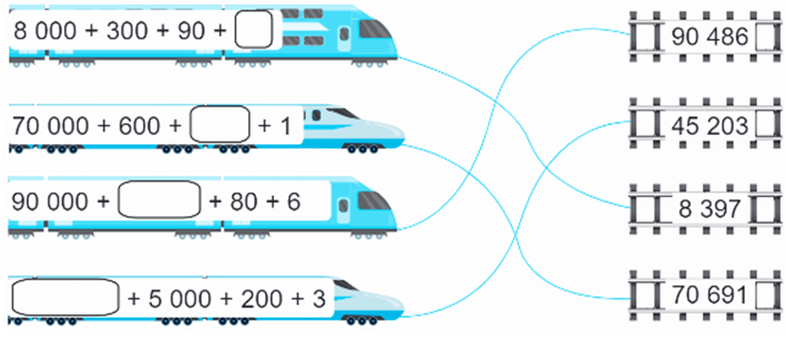 d. 95 602 = 90 000 + 5 000 + ………… + 2