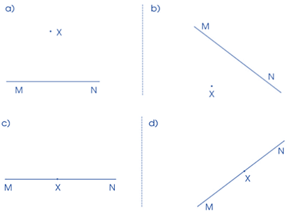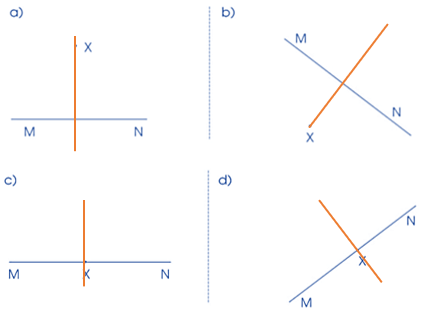 Vẽ đường thẳng PQ đi qua điểm X và vuông góc với đường thẳng MN trong các trường hợp sau đây: