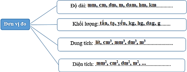 - Viết tên các đơn vị đo độ dài, khối lượng, dung tích, diện tích đã học: