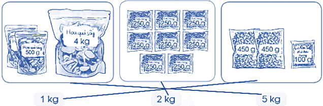 Chọn thẻ ghi cân nặng thích hợp với mỗi hình vẽ sau: