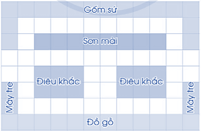 Gian hàng gốm sứ gồm 16 ô vuông.