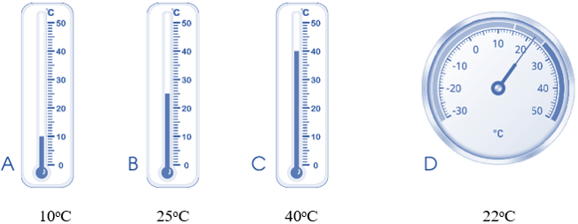 Đọc nhiệt độ ghi trên mỗi nhiệt kế sau: