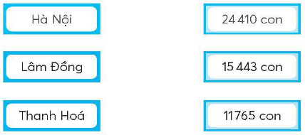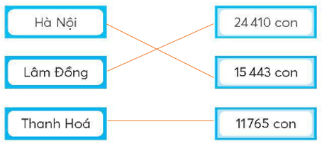 Nối tên các tỉnh, thành với số lượng bò sữa thích hợp.
