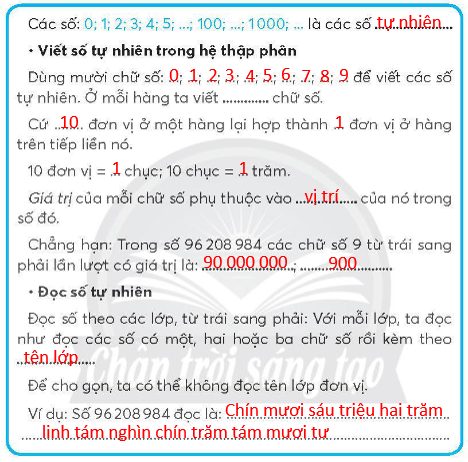 Vở bài tập Toán lớp 4 trang 78 Bài 26: Đọc, viết các số tự nhiên trong hệ thập phân Chân trời sáng tạo