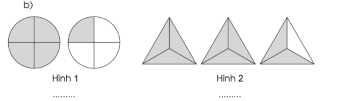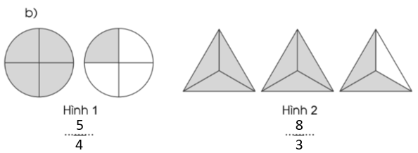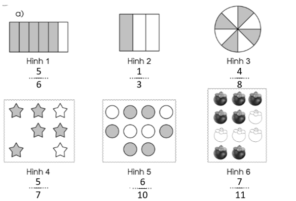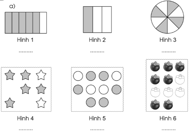 Viết phân số chỉ phần đã tô màu trong mỗi hình sau: