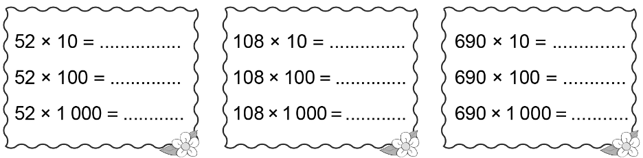 52 × 10 = 520 52 × 100 = 5 200 52 × 1 000 = 52 000 |