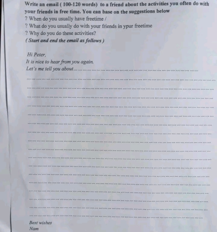 ften do with your friend in free time. You can base on the suggestions below. Giúp tui với ạ tui cần gấp mai tớ kiểm tra rồi mong mn giúp hộ tui tui cảm ơn ạ rất cảm ơn luôn ạ.