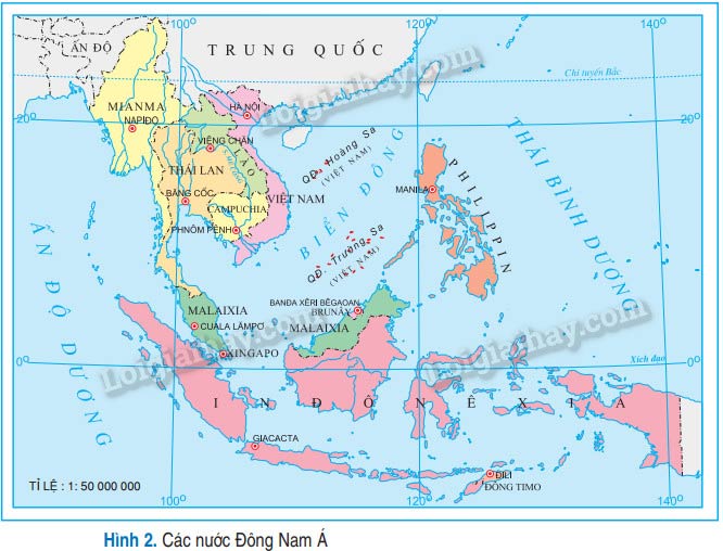 Hãy xác định vị trí địa lí và phạm vi lãnh thổ nước ta trên bản đồ Các nước Đông Nam Á