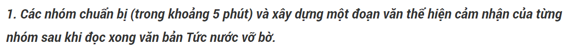 Xây dựng một đoạn văn thể hiện cảm nhận của từng nhóm sau khi đọc xong văn bản Tức nước vỡ bờ