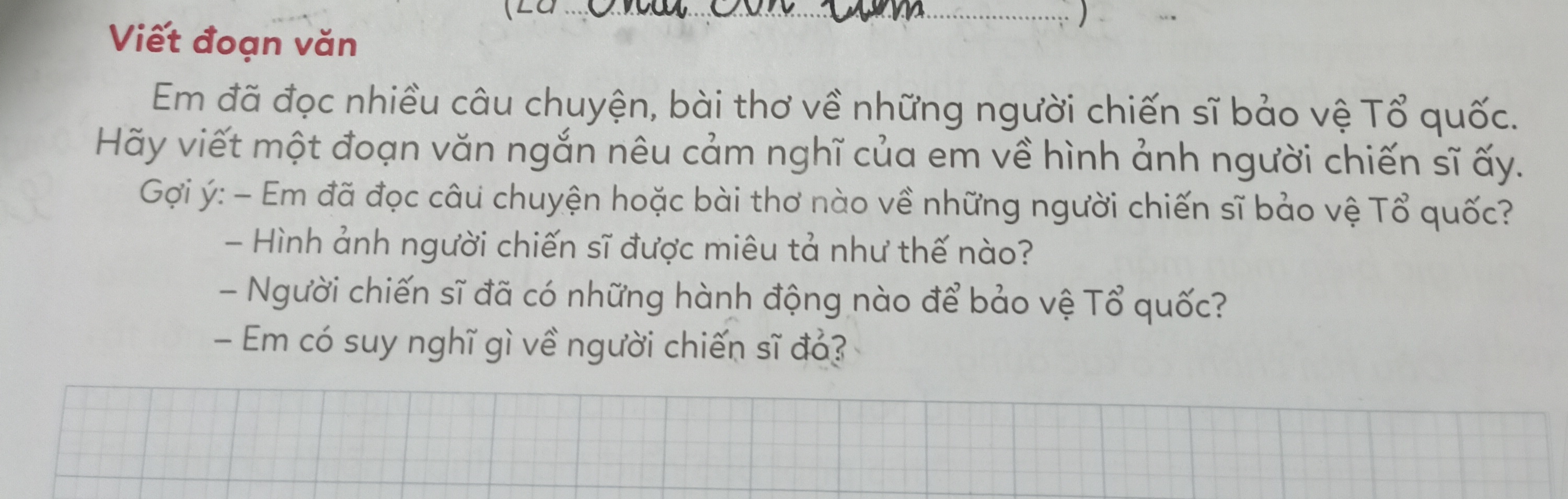 Viết đoạn văn ngắn nêu cảm nghĩ của em về hình ảnh người chiến sĩ